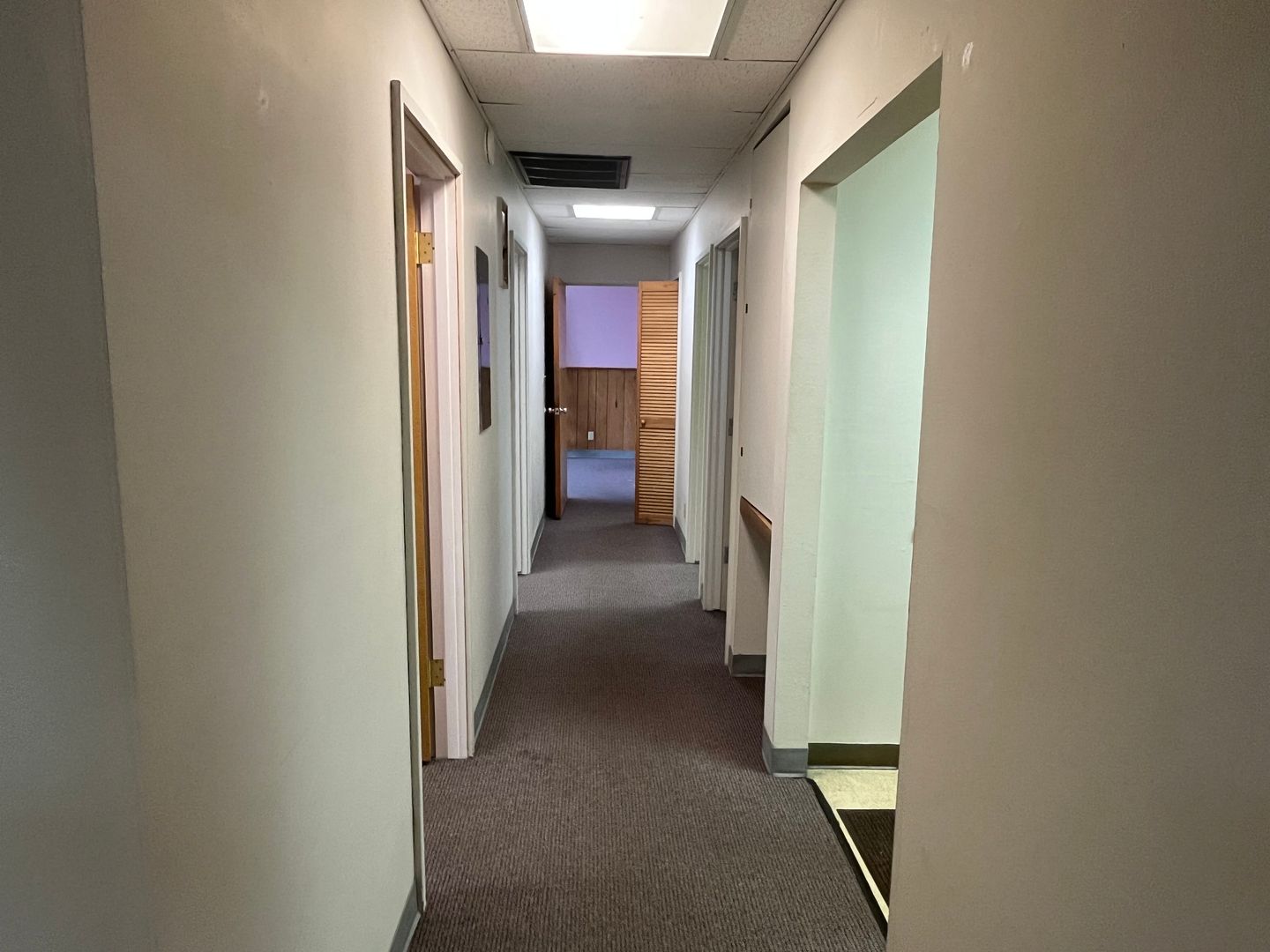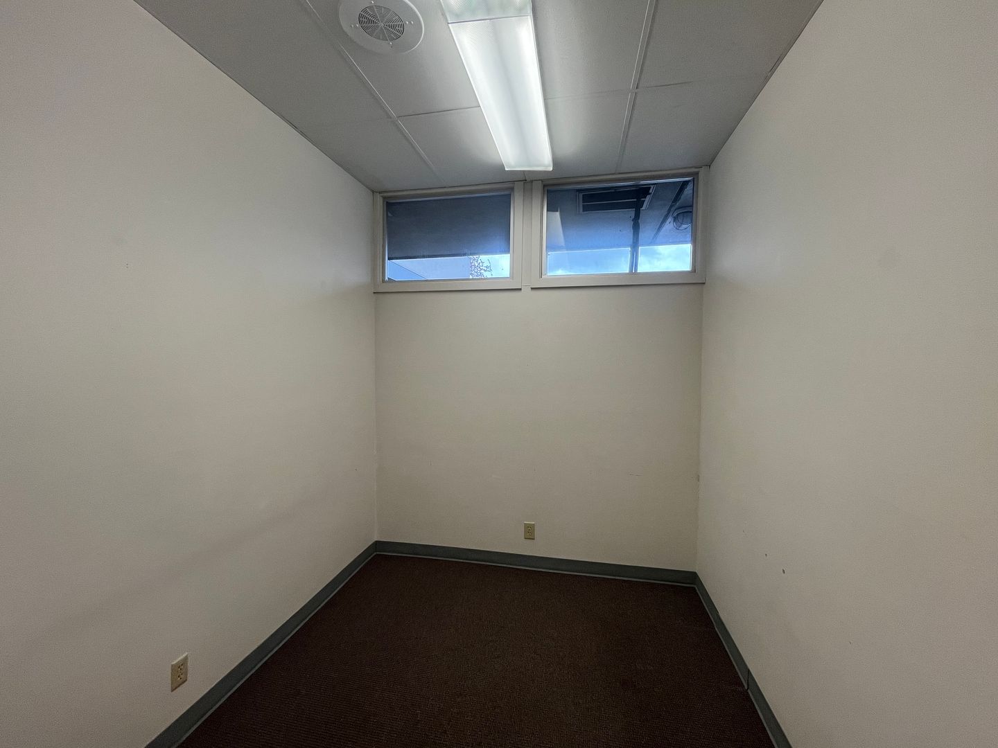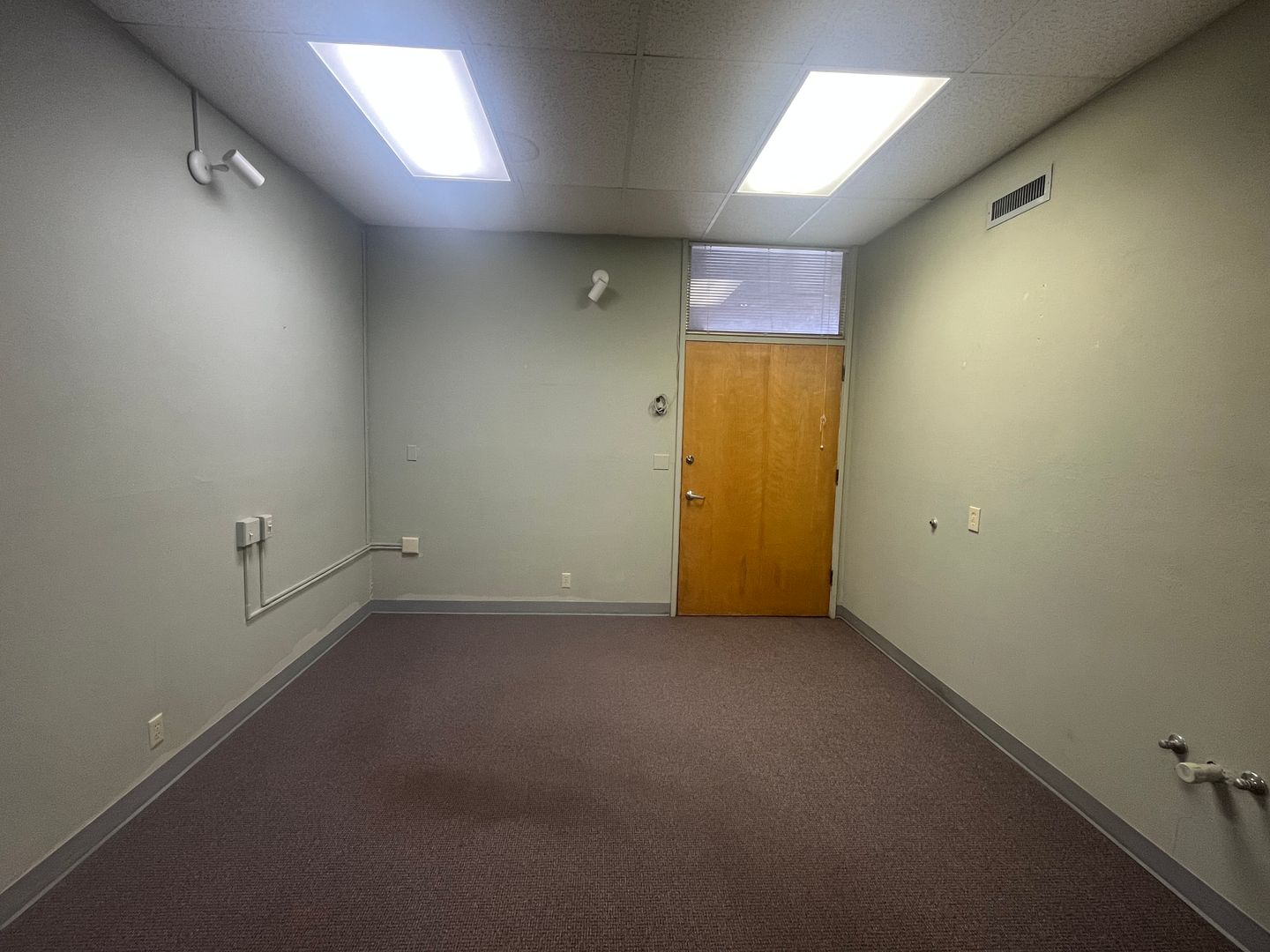 distance to nearby businesses, services, and the post office. The space features a reception area, four private offices, a breakroom, two restrooms, and a storage room, making it well suited for professional or medical users. The 9' ceilings and HVAC system make this unit open and comfortable. The suite is move in ready and the landlord is willing to refresh the space. Water, sewer, garbage included in the lease.